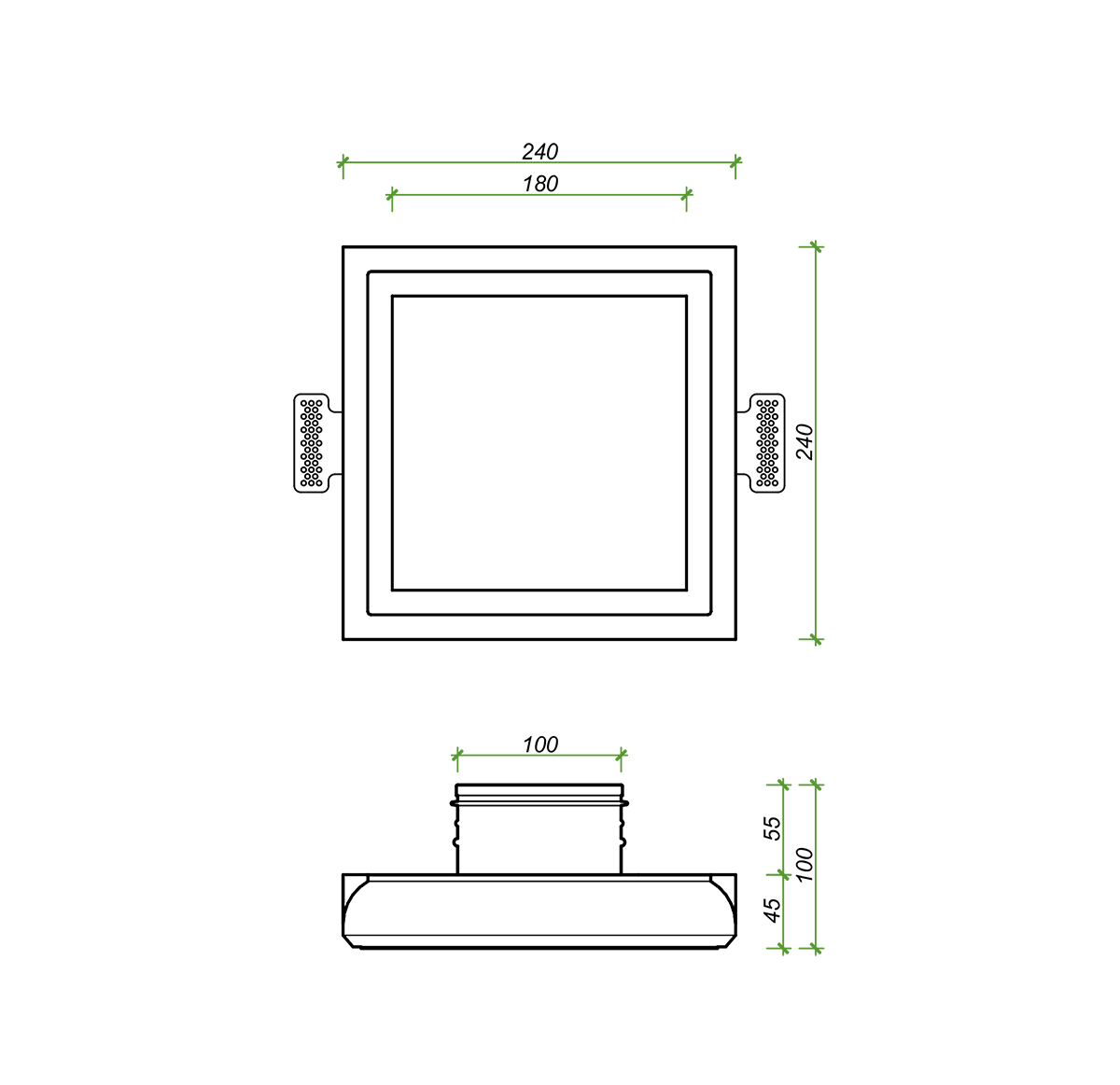 Установочный диаметр - 100 мм